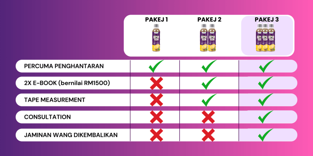 Dengan semua kelebihan ni, PINATOX pilihan terbaik untuk sesiapa yang cari cara semulajadi untuk tingkatkan kesihatan keseluruhan, bantu pencernaan, kurangkan keradangan, dan sokong usaha kuruskan badan.